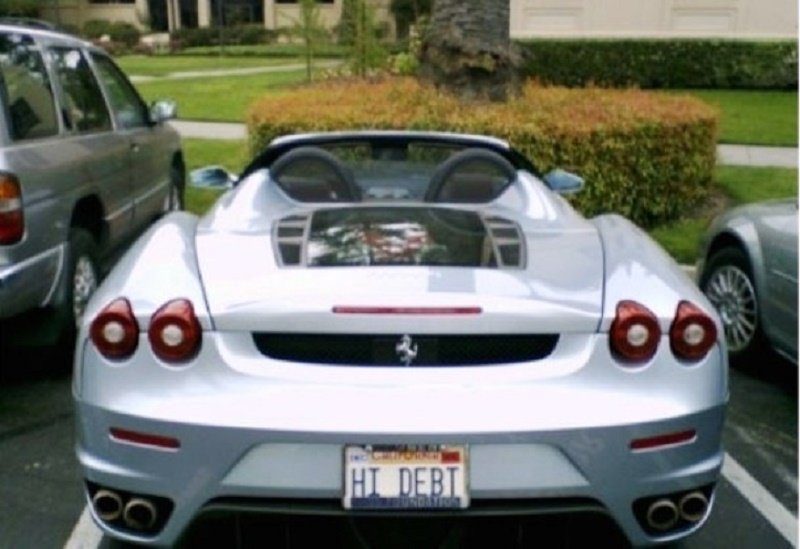 Anyone who buys this nice of a car is either really rich or in a whole lot of debt. At least this guy has accepted his fate.