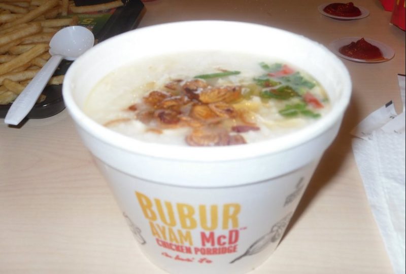 Soup is a little tough to find stateside in McDonald’s, but if you’re willing to head to Malaysia you can find the “Bubur Ayam” menu item. It features chicken strips in Malaysian-style porridge topped with spring onions, ginger, fried shallots for flavor.
